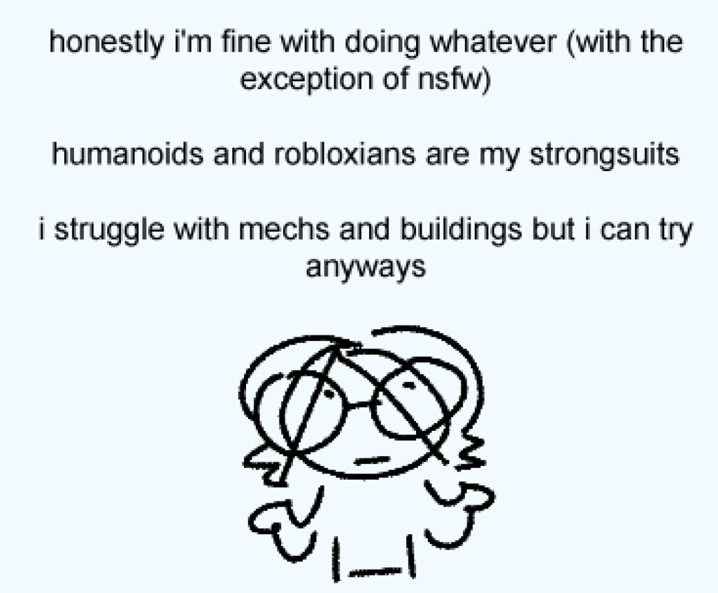 (Note that I am relatively new to taking commissions: more may be added to this list as I figure out where my comfort zone lies. Please be patient)